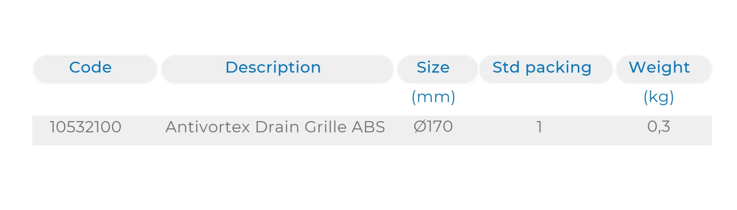 Circular antivortex drain grille and ring support in white ABS. Ø170mm. Maximum flow rate 12 m³/hr.