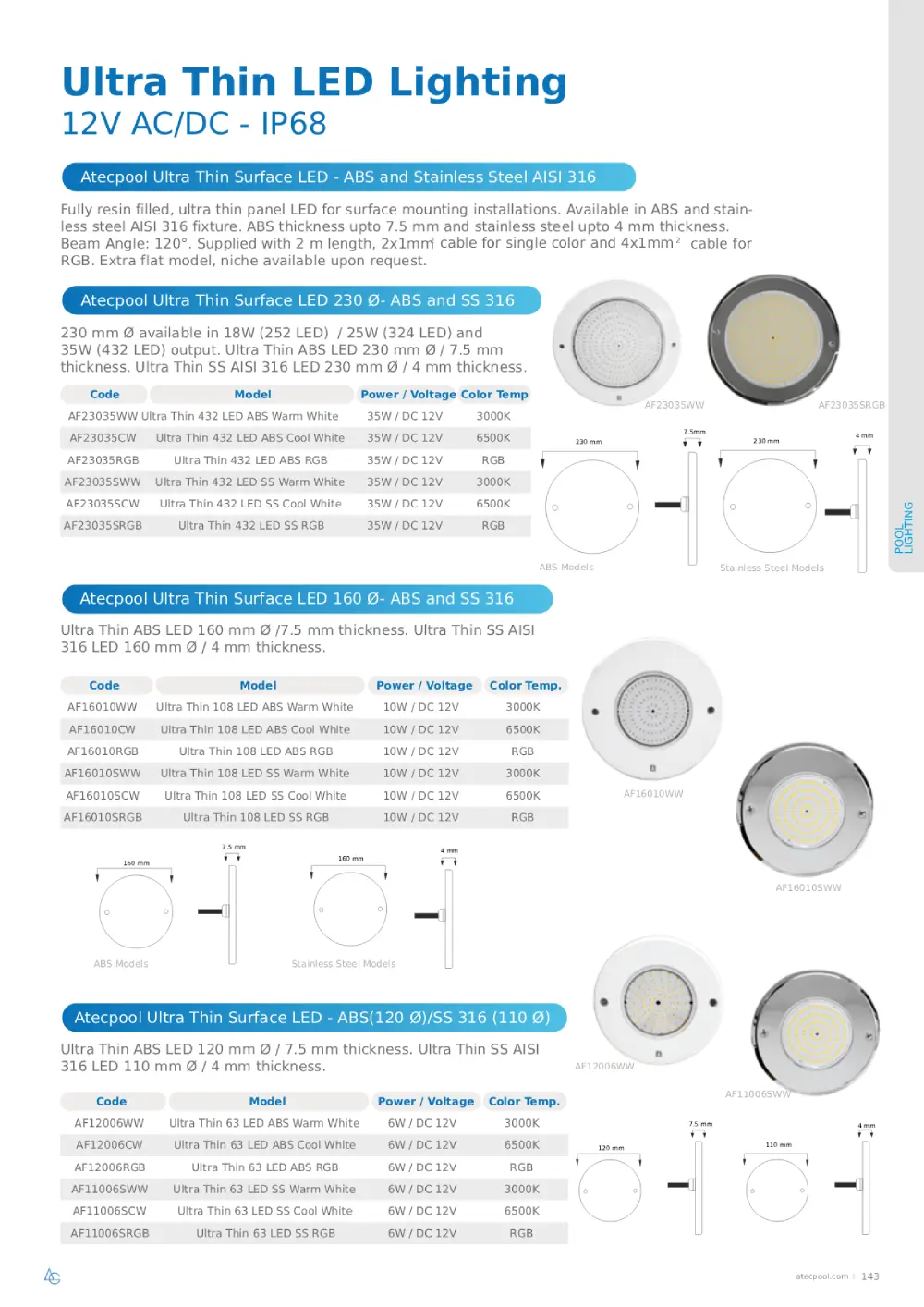 Atecpool Ultra Thin Surface LED – ABS(120 Ø)/SS 316 (110 Ø)