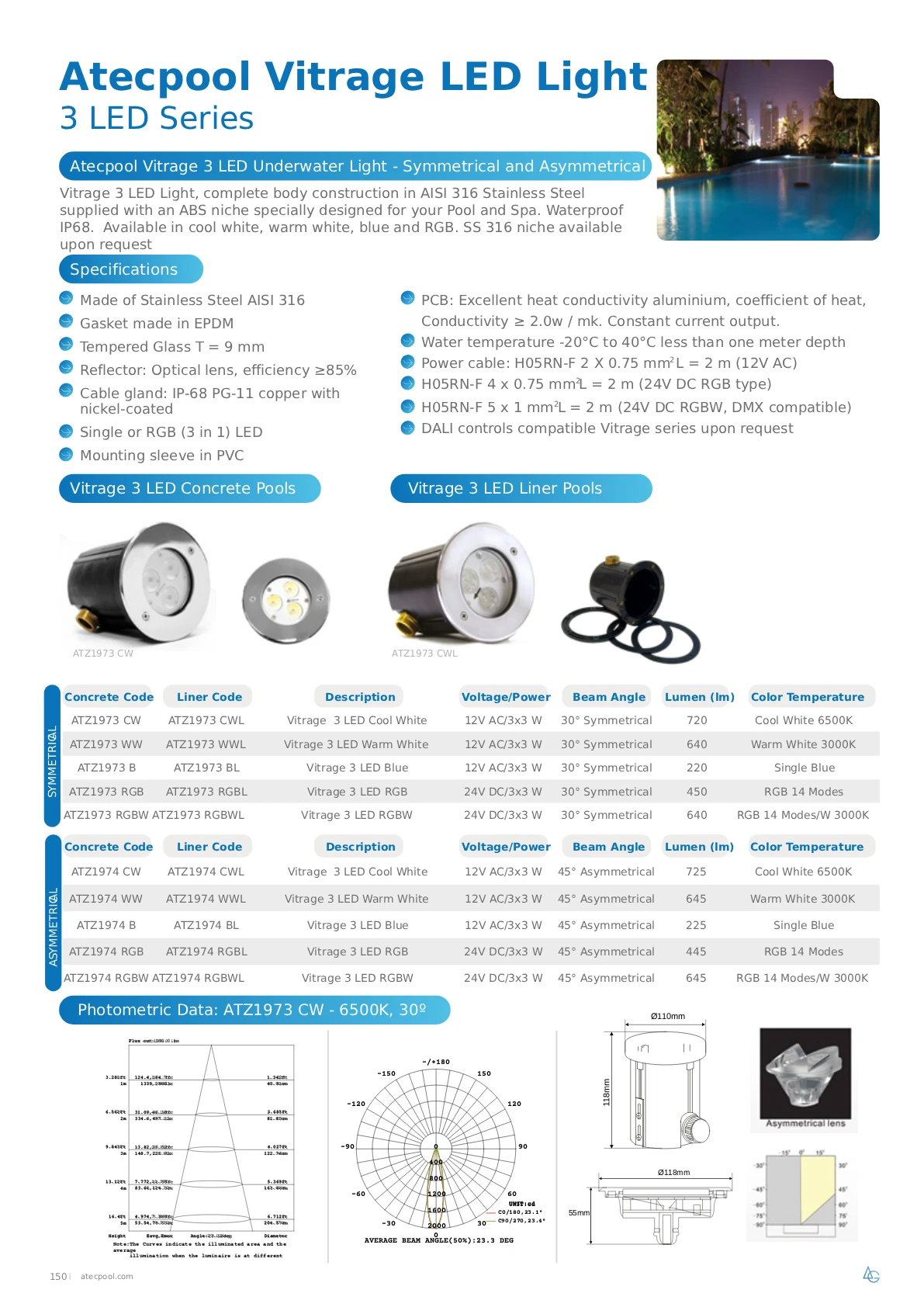 - Power cable: H05RN-F 2 X 0.75 mm2 L = 2 m (12VAC low voltage). H05RN-F 4 x 0.75 mm2 L = 2 m (RGB type)