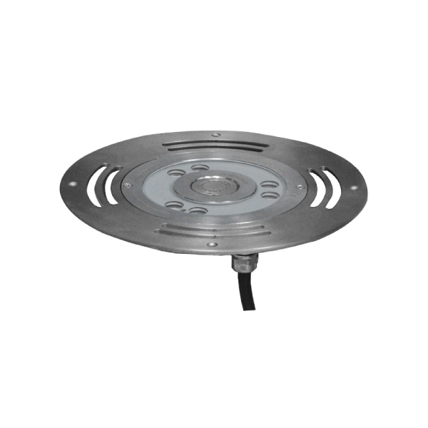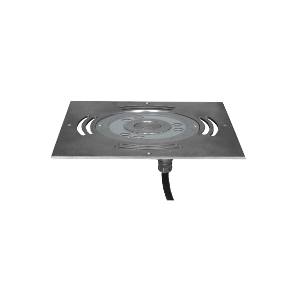 Flush-mounted Deck Jet Nozzle in two shapes, Circular and Square. Nozzle assembly with 360-degree illuminating LED includes different spray effects upon selection of the nozzle ( Column or Angle Ring ). LED-Nozzle assembly suitable for a dry deck fountain where there is no visible water body, but is sprayed from nozzles and drained through a grate cover surrounding the nozzle assembly.