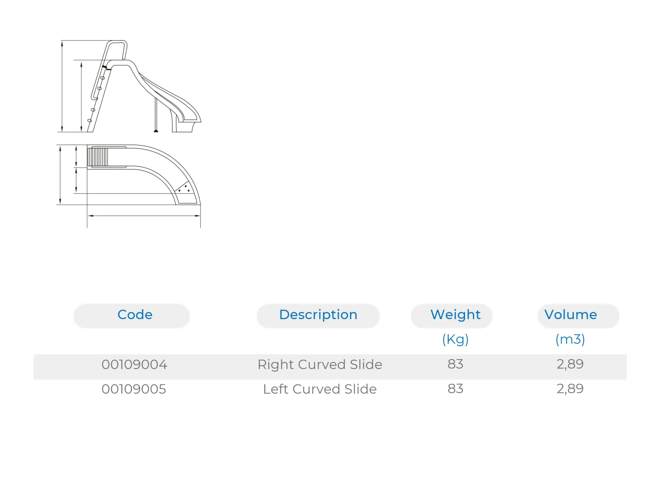 Slide made in polyester and fiberglass with non-slip polyester steps. Water Inlet to aid sliding. Supplied with grab rails and anchoring fixtures.